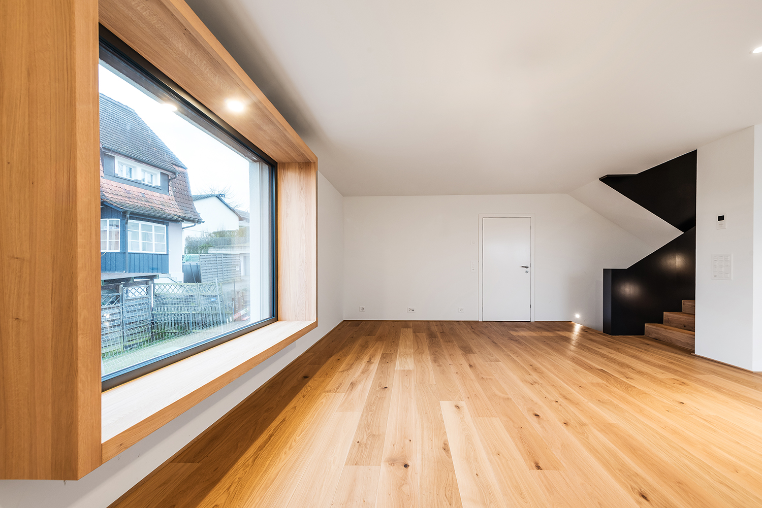 Ein modernes Neubauprojekt in Kreuzlingen über vier Etagen, geprägt von elegantem Landhausdielen-Parkett – sogar im Badezimmer.